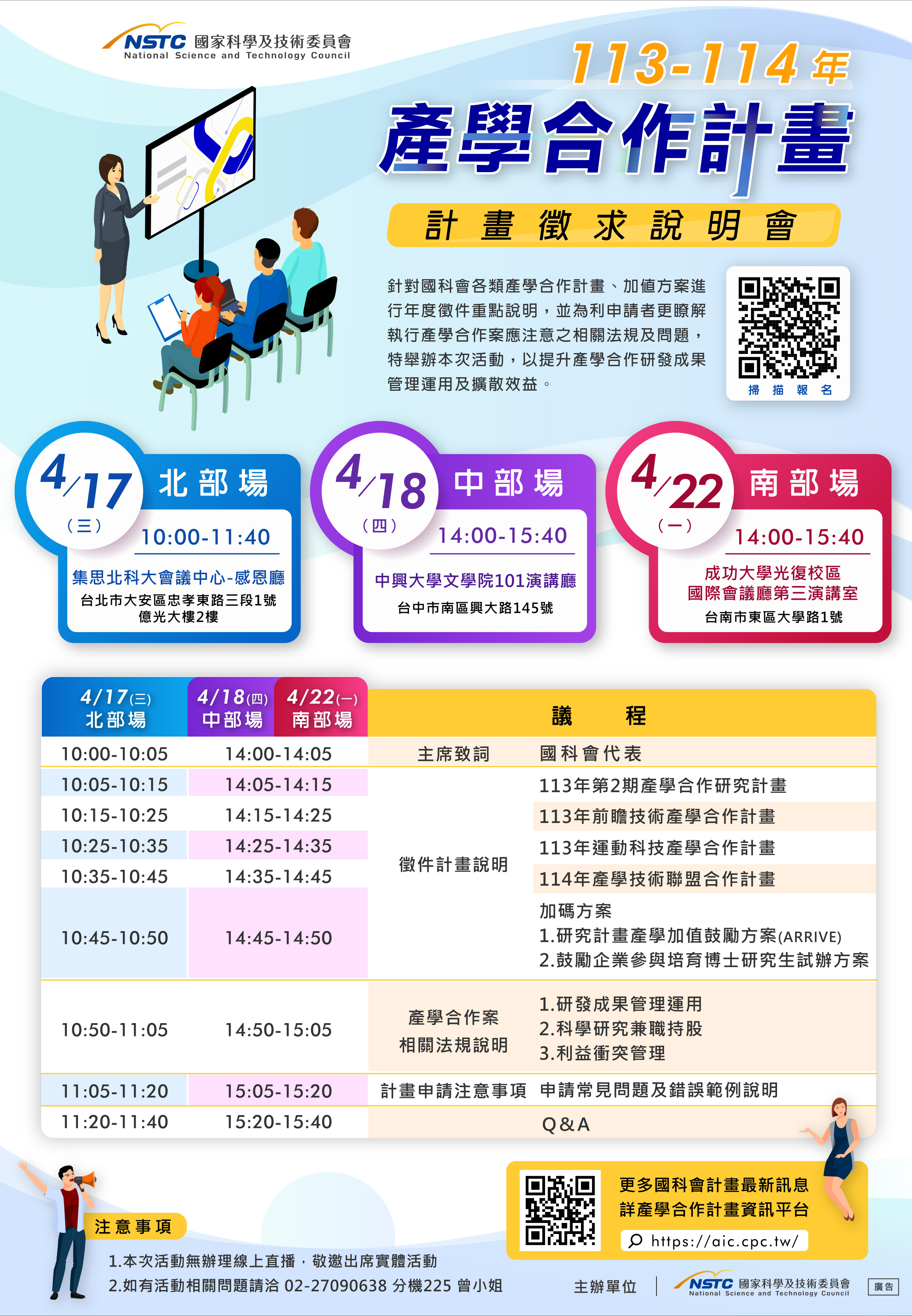 國科會產學處將於四月辦理北中南三場次的產學計畫徵件說明會